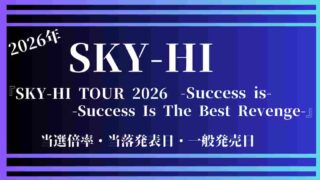SKIHI SKY-HIライブ2026倍率!チケット当選確率?当落発表・一般発売日はいつ? SKI-HIさんが2025年の冬にアルバムをリリースされる事を発表されましたが、もっと嬉しいニュースがありますよね、アルバムを引っ提げて約2年振りの全国ツアー『SKY-HI TOUR 2026 -Success is-』を発表され、ファイナ... 2025.11.14 SKIHI