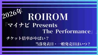 ロイロム 【ロイロム】ライブ2026!チケット倍率がやばい?当落発表・一般発売日はいつ? ロイロムが4月にKアリーナで開催される『マイナビ Presents The Performance』に出演される事を発表されましたね!2025年の11月の有明アリーナ公演から半年ぶりのライブ公演になり、有明公演では2万人のファンを魅了させ、... 2026.03.15 ロイロム