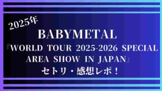 BABYMETAL 【ベビメタ】2026!埼玉スーパーアリーナ!セトリネタバレ・感想レポ BABYMETALさんが『WORLD TOUR 2025-2026 SPECIAL AREA SHOW IN JAPAN』が本日1月10日に初日を迎えましたよね!ライブ公演で、一緒に盛り上がりたいので、どの曲がどういった順番で歌ってくれるか... 2026.01.10 BABYMETAL