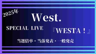 WEST West.年末ライブ2025倍率!チケット当選確率は?当落発表・一般発売日はいつ? 2025年の年末年種にWest.さんがSPECIAL LIVE 『WESTA!』を開催する事が発表されましたよねそこで気になるチケット当選確率と当選発表日・一般発売をご紹介しますWest.年末ライブ2025倍率!チケット当選確率は?West... 2025.10.15 WEST