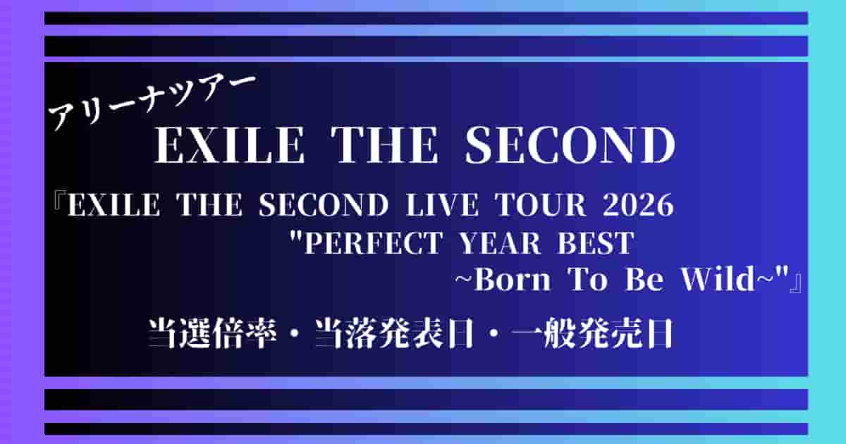 今回は”EXILE THE SECONDライブ2026倍率!チケット当選確率?当落発表・一般発売日はいつ?”と題してお送りいたしました
