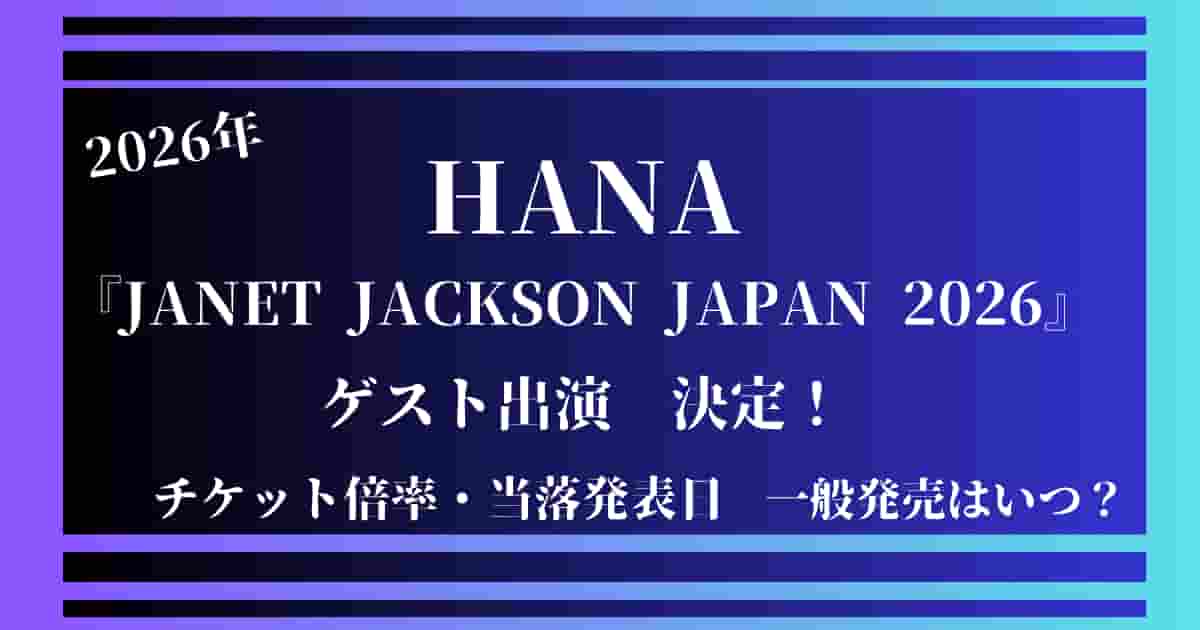 ジャネットジャクソンさんの日本ツアー『JANET JACKSON JAPAN 2026』のチケット当選確率は36,1倍~240,4倍になり、こちらにHANAさんのチケット当選確率の75,2倍~240,4倍になります。