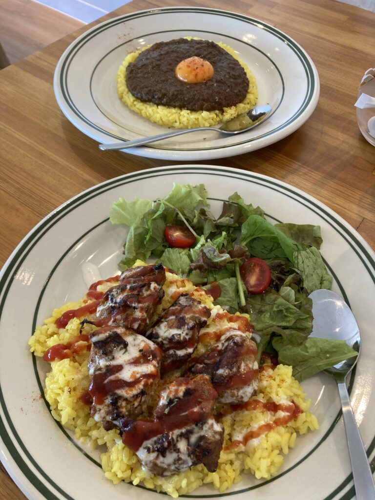 私が選んだランチメニューは、ニューヨークの定番”チキンオーバーライス”とやさしいスパイスの効いた”キーマカレー”です