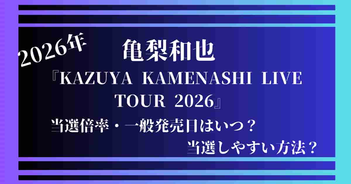 亀梨和也さんのライブ公演『KAZUYA KAMENASHI LIVE TOUR 2026』のチケット当選確率20,3倍~114倍になります。