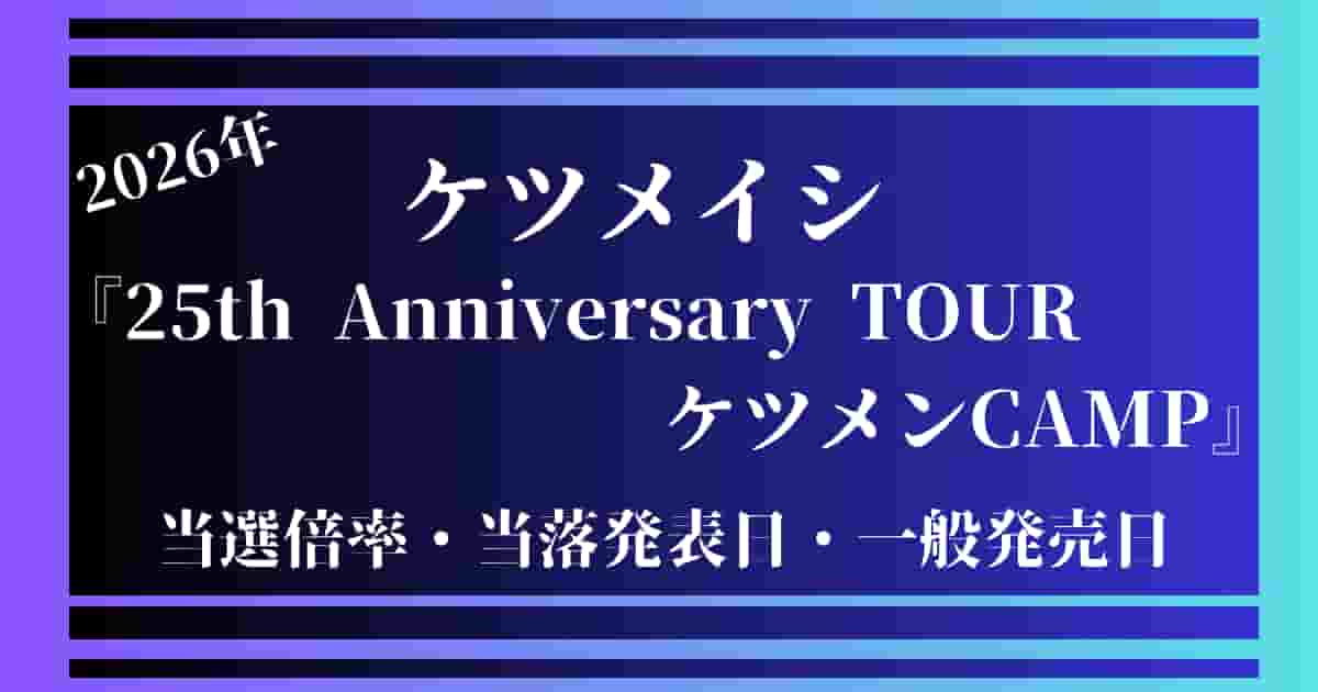 今回は”ケツメイシライブ2026倍率!チケット当選確率?当落発表・一般発売日はいつ?”と題してお送りいたしました