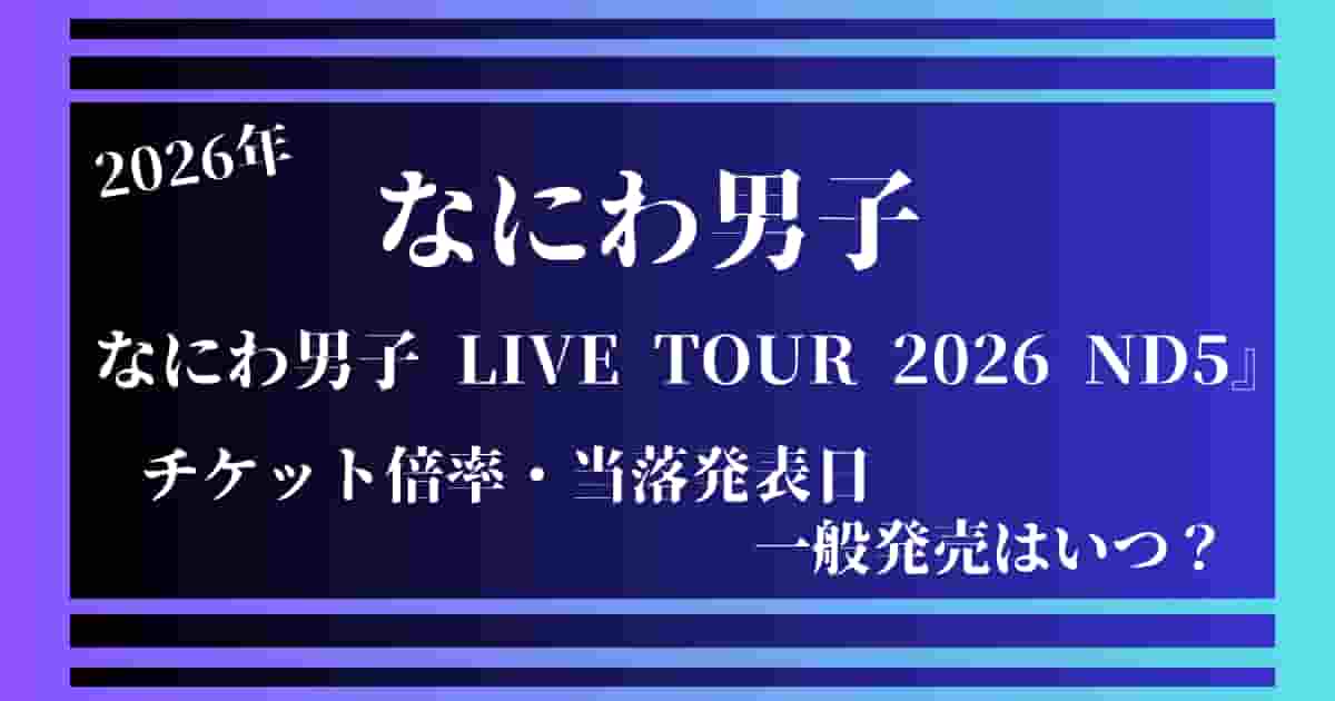 なにわ男子さんの全国ツアー『なにわ男子 LIVE TOUR 2026 ND5』のチケット一般発売は未発表になりますが、今までのながれで行くと2週間前になりますが、詳細は後日発表になります。
