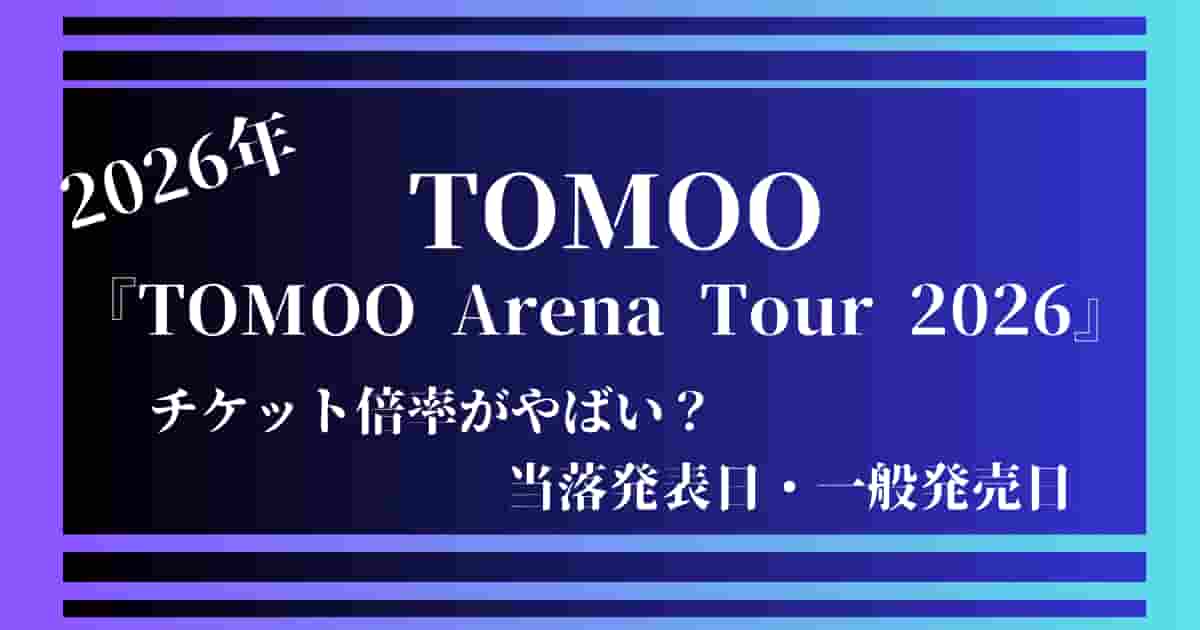 TOMOOさんの初アリーナツアー『TOMOO Arena Tour 2026』のチケット当選確率は3,3倍~9,2倍になります。