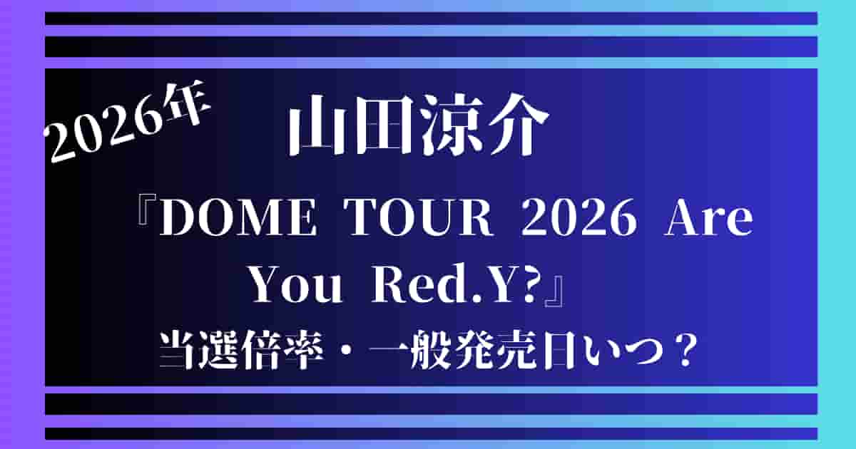 山田涼介さんのライブ公演『DOME TOUR 2026 Are You Red.Y?』のチケット当選確率は1,1倍~6,4倍になります。
